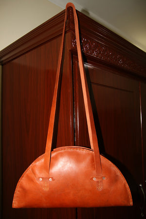 Wrapped in the gentle curve of a half-moon silhouette, this handmade ladies leather handbag tells a story of quiet luxury and untamed grace. Designed for women who walk boldly yet softly, who don’t just follow trends but create their own, this bag is a reflection of individuality and confidence.