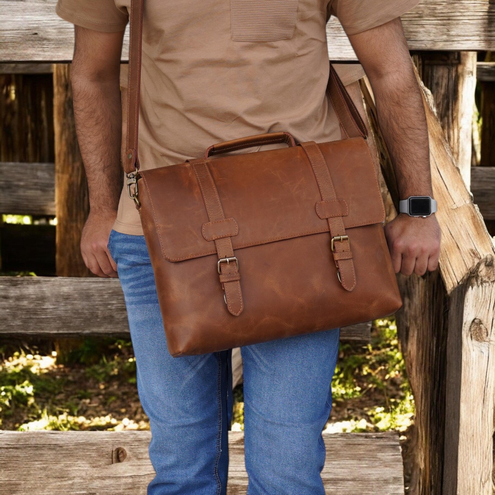 Mens leather Messenger laptop bag