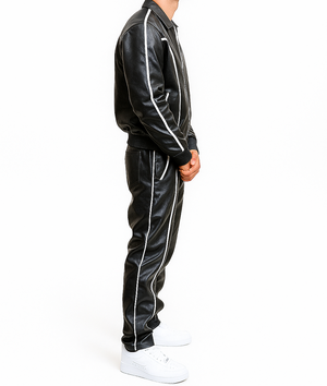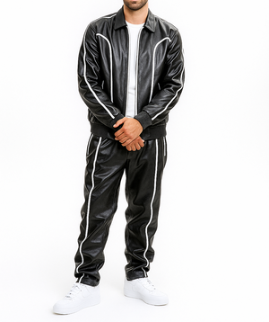 Step up your style with our real lambskin leather tracksuit, featuring drawstring sweatpants, YKK zippers, and two pockets, premium comfort meets timeless luxury.