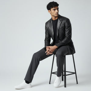 Timeless and stylish, the quintessential black leather Blazer is every man’s dream and a necessity. Add this sleek leather Blazer to your casual wardrobe to throw in some smart fashion.