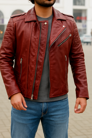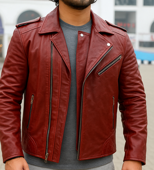 Ignite your style with this bold Red Café Racer Leather Jacket. Rooted in motorcycle heritage, this premium piece is crafted from genuine leather for the modern man who values adventure and standout style. Its sleek, minimalist silhouette and vibrant red color deliver a powerful statement for both the open road and urban streets.