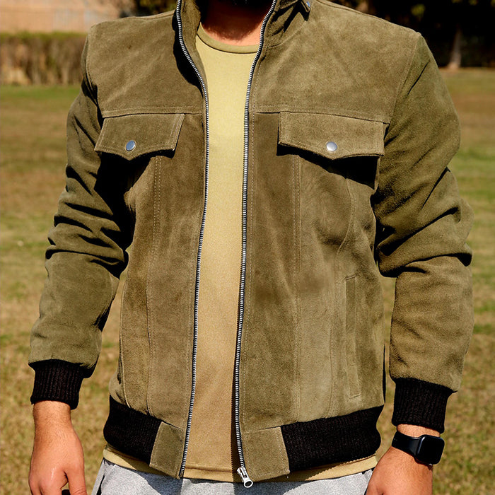 Green Suede leather jacket for men's