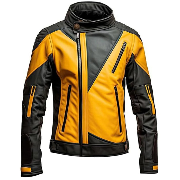 Men's Black and Yellow Jacket, premium leather jacket