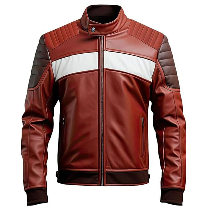 Men's Maroon and Brown Leather Jacket, premium leather jacket