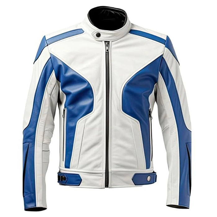 Men's White and Blue Jacket, premium leather jacket
