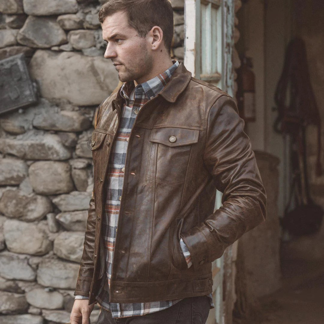 Driggs Brown Leather Biker Jacket for men’s