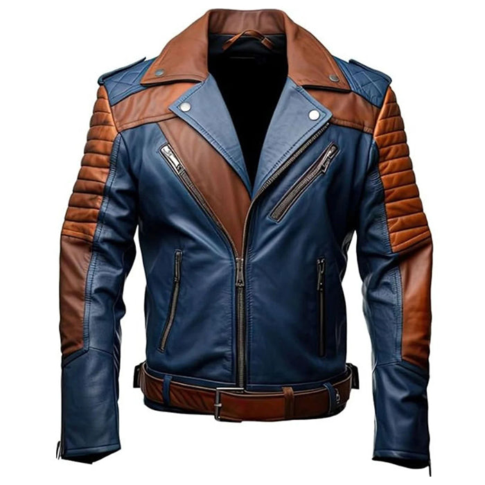 Men's Blue and Brown Jacket, premium leather jacket