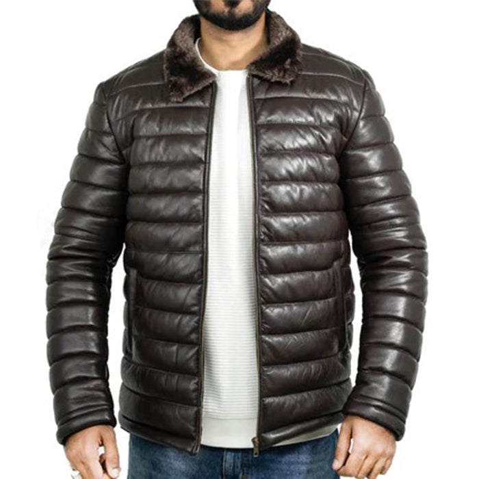 Lamb Skin Leather Puffer Jacket | Dark Brown Premium jacket