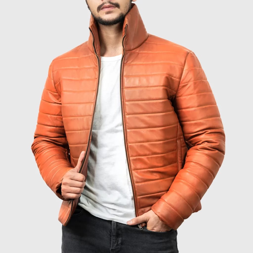 Orange Bomber leather Jacket For Men’s