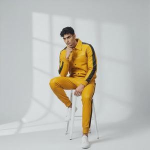 Men's Yellow Leather Track Suit jogging Sweatsuit