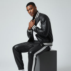Experience luxury in motion with our real lambskin leather tracksuits. Featuring drawstring leather sweatpants, YKK zippers, and a sleek fit, crafted for comfort, durability, and bold street style.