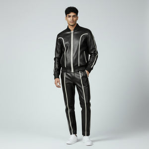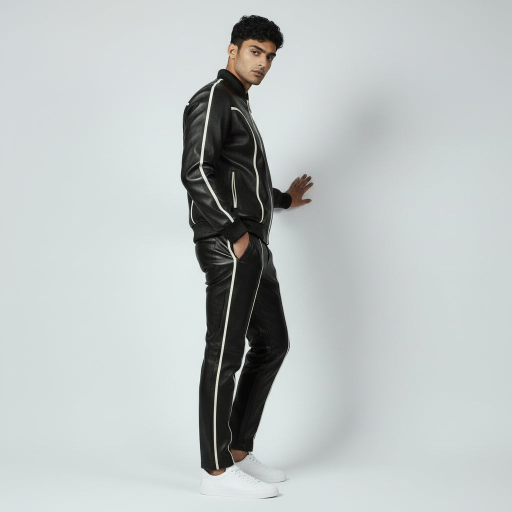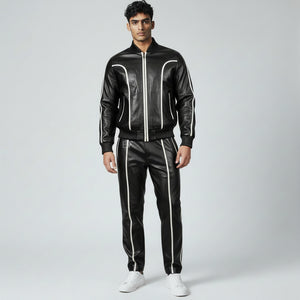 Step up your style with our Real lambskin leather tracksuit, featuring drawstring sweatpants, YKK zippers, and two pockets, premium comfort meets timeless luxury.