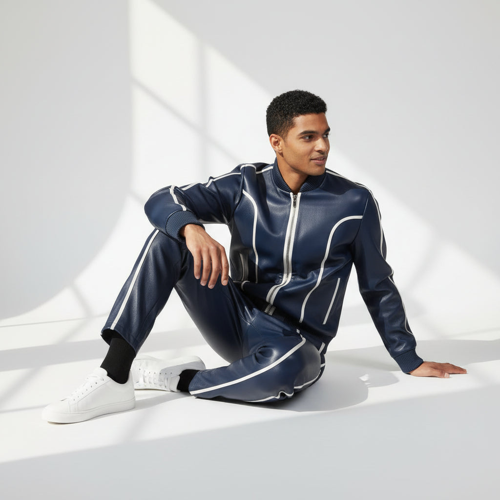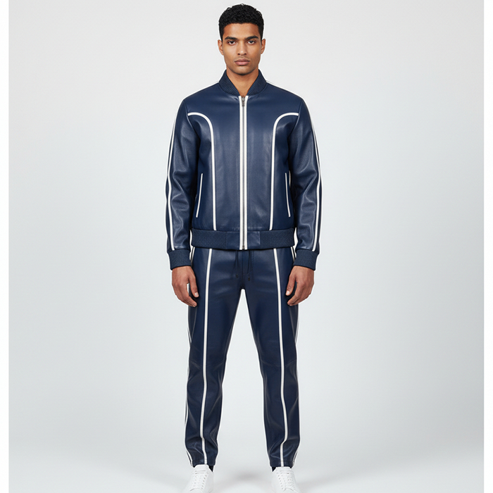 Blue Leather Tracksuit